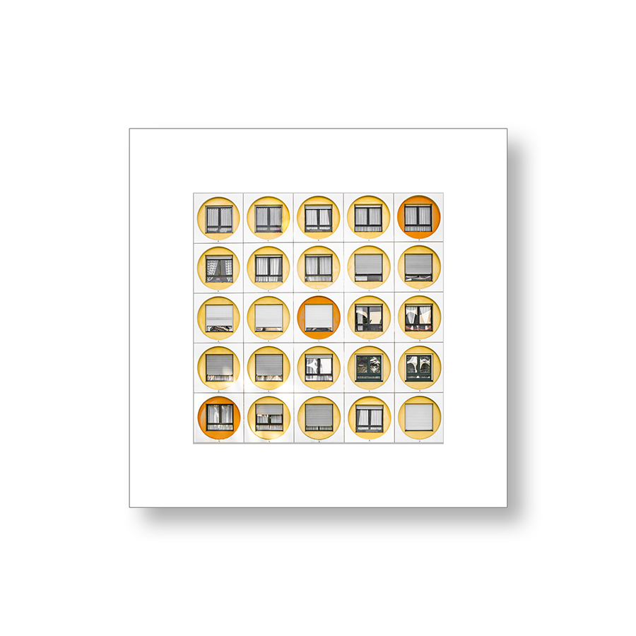 Photographie en couleur sur papier photo de 20 cm x 20 cm avec passe-partout blanc de 30cm x 30cm.