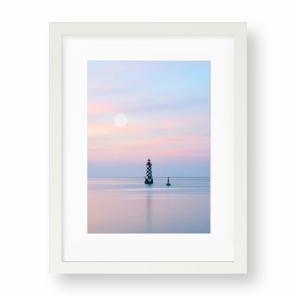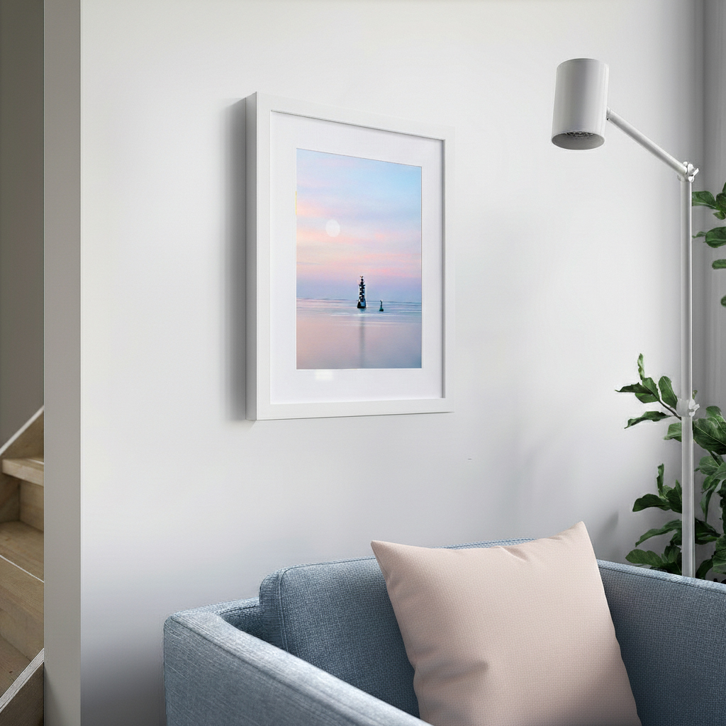 Photographie en couleurs sur papier photo de 20 cm x 30 cm avec un passe-partout blanc de 30cm x 40cm dans un cadre blanc de 32 cm x 42 cm.