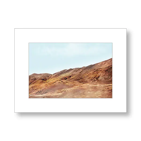 Photographie en couleurs sur papier photo de 20 cm x 20 cm avec un passe-partout blanc de 30cm x 30cm dans un cadre noir de 32 cm x 32 cm.