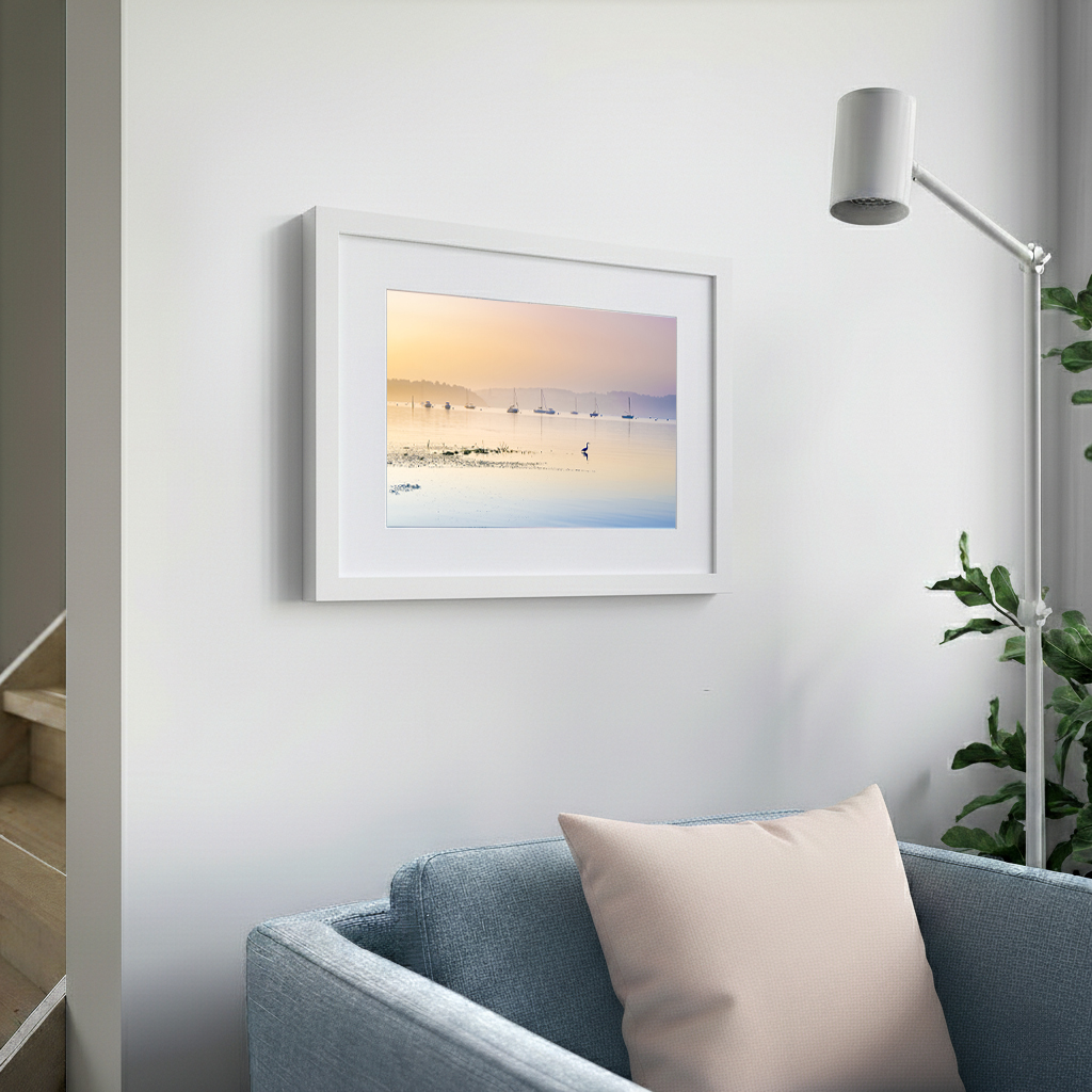 Photographie en couleurs sur papier photo de 20 cm x 30 cm avec un passe-partout blanc de 30cm x 40cm dans un cadre blanc de 32 cm x 42 cm.